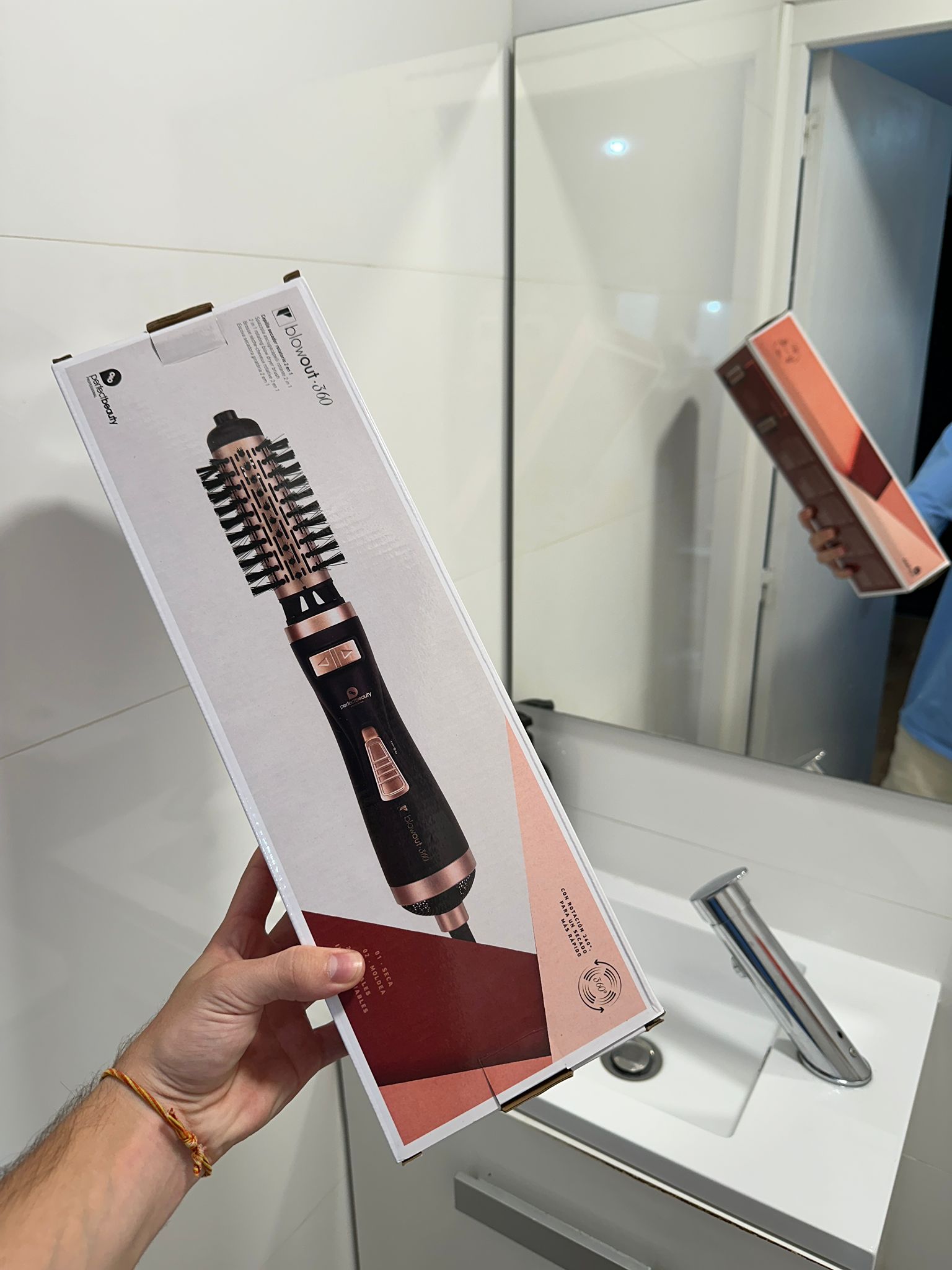Secador 2 en 1 que seca y moldea el pelo. Es una herramienta práctica que combina las funciones de secado y peinado, ahorrando tiempo y simplificando el proceso. Permite obtener resultados similares a los de la barbería al dar volumen, ondas o un acabado liso, mientras reduce el daño al cabello al aplicar menos calor que usar un secador y una plancha por separado. Además, cuenta con varios ajustes de temperatura y velocidad, lo que lo hace versátil y adaptable a diferentes tipos de cabello, ideal para quienes buscan eficiencia en su rutina diaria.